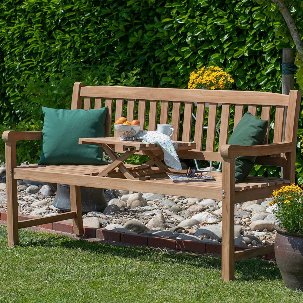 Dank ihrer zeitlosen Gestaltung lässt sich die Bank Woodley vielseitig mit anderen Gartenmöbeln kombinieren und wird schnell zum gemütlichen Mittelpunkt im Außenbereich.