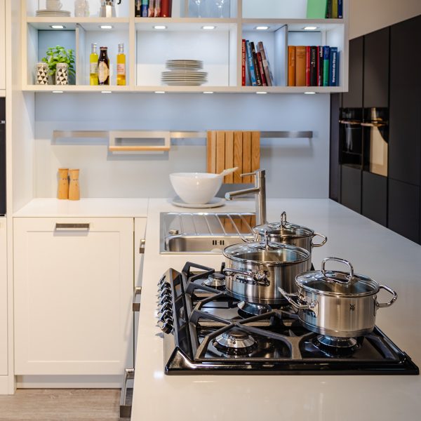 Die Einbauküche Carre-FS weiß besticht durch zeitloses Design und hochwertige Materialien – ideal für modernes, stilvolles Wohnen.