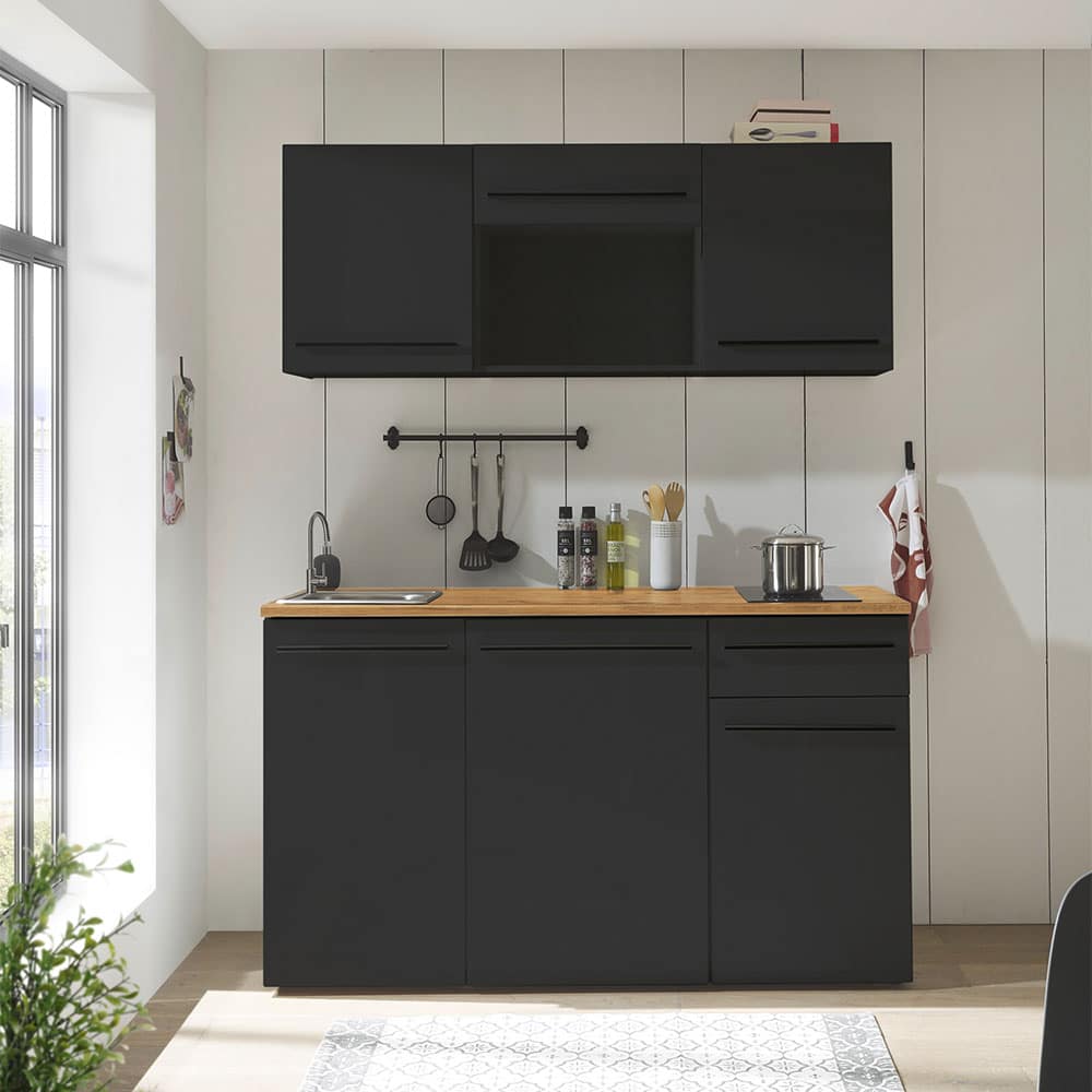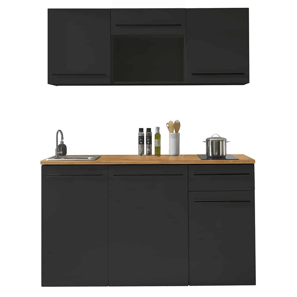 Einbauküche Jazz Single, schwarz, Breite ca. 160 cm