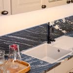 Die Einbauküche Porto P15 verbindet zeitlose Eleganz mit moderner Küchenplanung. Die Einbauküche Porto P15 besticht durch matten Fronten in edlem Platingrau, die für eine ruhige, hochwertige Optik sorgen und vielseitig kombinierbar sind. Klassische Rahmenfronten und dunkle Griffknöpfe setzen stilvolle Akzente und unterstreichen den hochwertigen Charakter der Küche. Großzügige Unterschränke, Oberschränke mit Glaseinsätzen sowie offene Regale bieten viel Stauraum und Platz für Dekoration oder Küchenutensilien. Die Kücheninsel schafft zusätzliche Arbeitsfläche und lädt zum gemeinsamen Kochen ein. Arbeitsplatte und Nischenverkleidung in dunkler Steinoptik bilden einen eleganten Kontrast und sind zugleich pflegeleicht und robust. Dank der durchdachten Aufteilung eignet sich die Porto P15 ideal für offene Wohnküchen. Die Einbauküche Porto P15 überzeugt nicht nur optisch, sondern auch funktional – für komfortables Arbeiten, modernes Design und langlebige Qualität im Alltag. Inklusive folgender Geräte: Natursteinplatte mit Rückwandverkleidung (Art.-Nr.: 106406500) Herd/Backofen (Art.-Nr.: H7262) Marke: Miele Energieeffizienzklasse: A+ Induktionskochfeld (EX800NVV6E) Marke: Siemens Inselabzugshaube (LF98BIR55) Marke: Siemens Energieeffizienzklasse: A Geschirrspüler (G 5150 Vi Active) Marke: Miele Energieeffizienzklasse: D Kühlschrank (KI32LVFE0) Marke: Siemens Energieeffizienzklasse: E Spüle Armatur Abfallsammler Einbauküche Porto P15 überzeugt durch hohe Qualität und zeitloses Design.