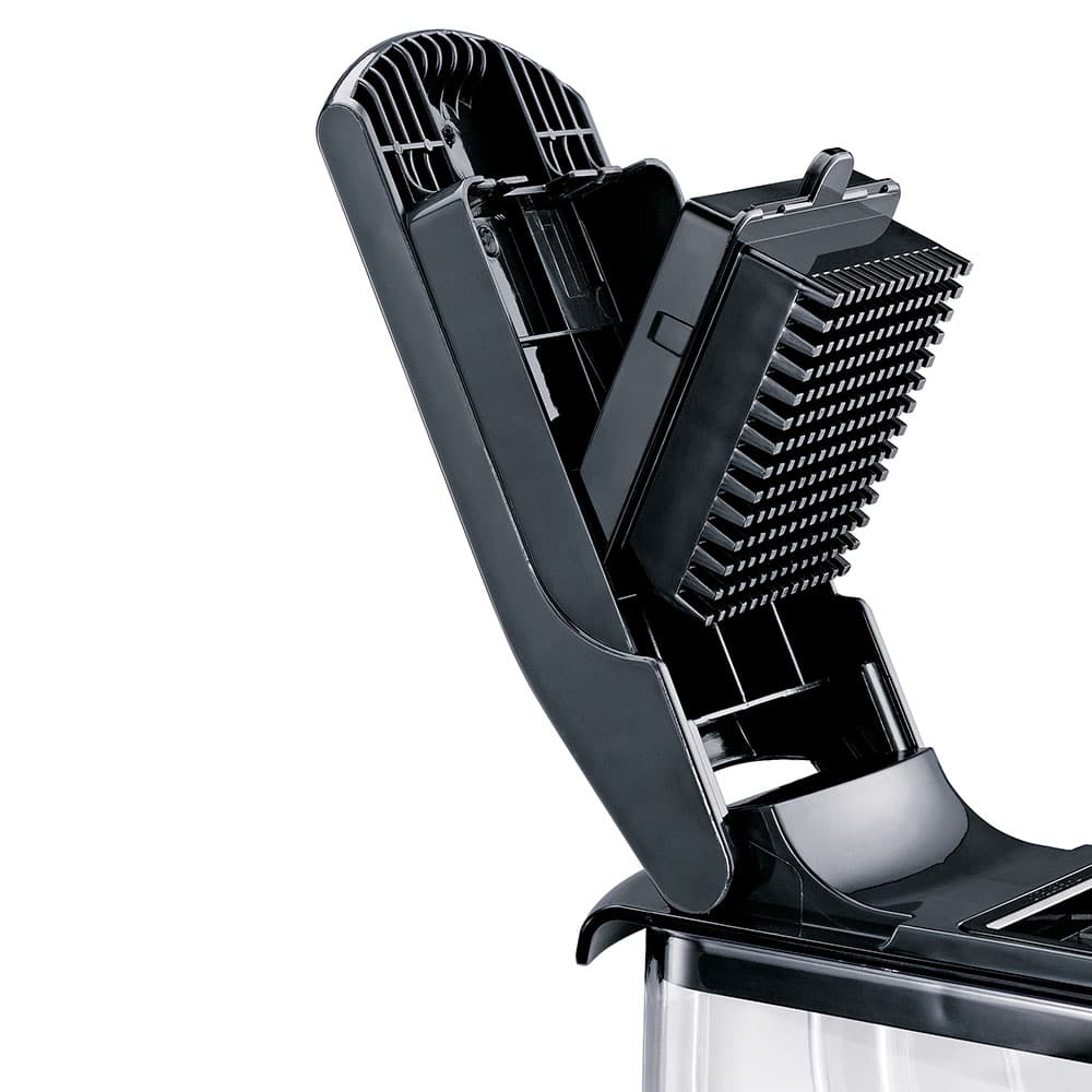 Das Design in Schwarz/Transparent fügt sich harmonisch in moderne Küchen ein, während die kompakte Form die Handhabung erleichtert und eine platzsparende Aufbewahrung ermöglicht. Mit Maßen von ca. H/B/T 13,1/13,3/30,3 cm bietet das Gerät ausreichend Kapazität für schnelle Portionen, bleibt jedoch angenehm handlich.