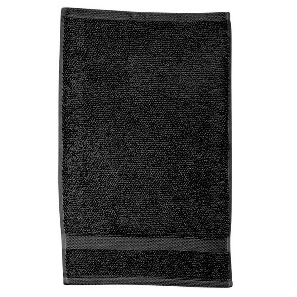 Kompaktes Gästehandtuch schwarz aus 100 % Baumwolle, ca. 30×50 cm groß. Besonders weich und saugfähig, waschbar bei 60 °C.
