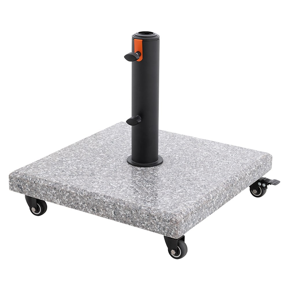 Der Granitsockel myZone mit ca. 50 kg Gewicht sorgt für einen stabilen Stand von Sonnenschirmen und lässt sich dank integrierter Rollen bequem verschieben.