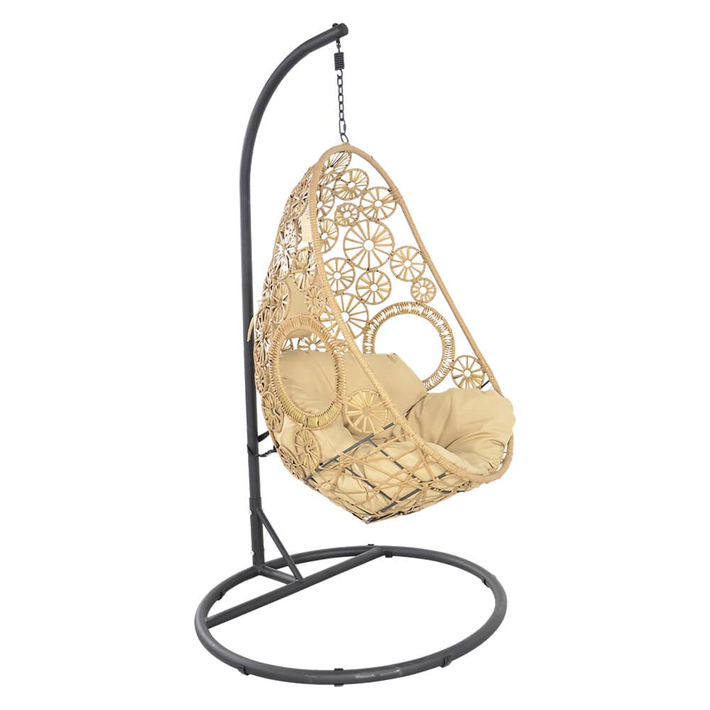 Das Gestell in matt Anthrazit sorgt für Stabilität und einen sicheren Stand, während die Sitz- und Rückenpolster in Beige ein besonders bequemes Sitzgefühl bieten. Die sanfte Schwingbewegung macht den Hängesessel zu einem idealen Rückzugsort zum Lesen, Entspannen oder Genießen der frischen Luft.