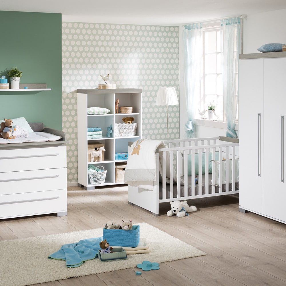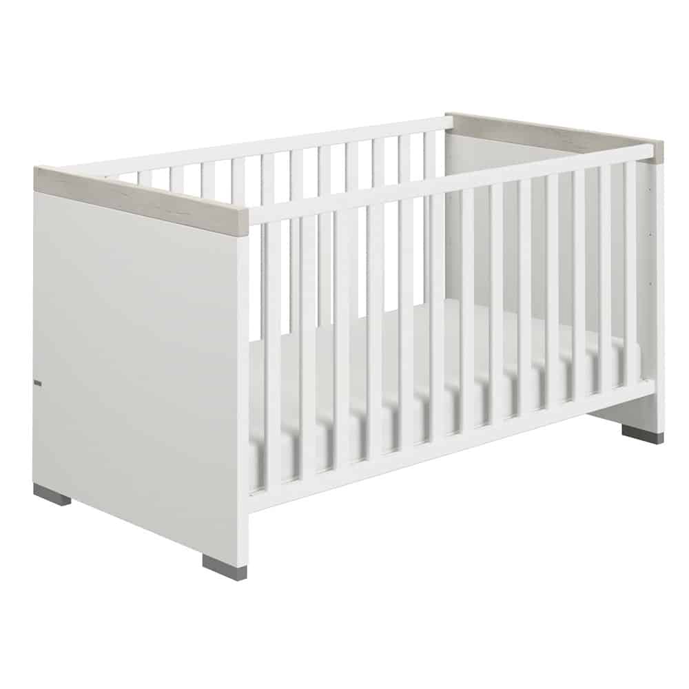 Das Kinderbett Kira (ca. 146x78x79 cm) in Eiche Nautik Dekor ist modern, höhenverstellbar (4-fach) und inklusive Lattenrost sowie Schlupfstrossen für mehr Sicherheit.