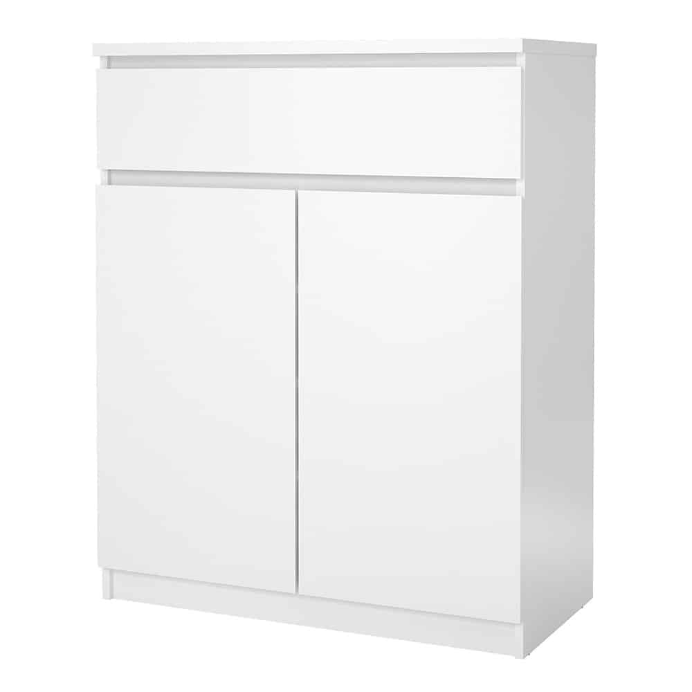 Kommode Nadia (ca. 81x101x40 cm) Korpus und Front weiß Hochglanz, Kunststoffgleiter, grifflos
