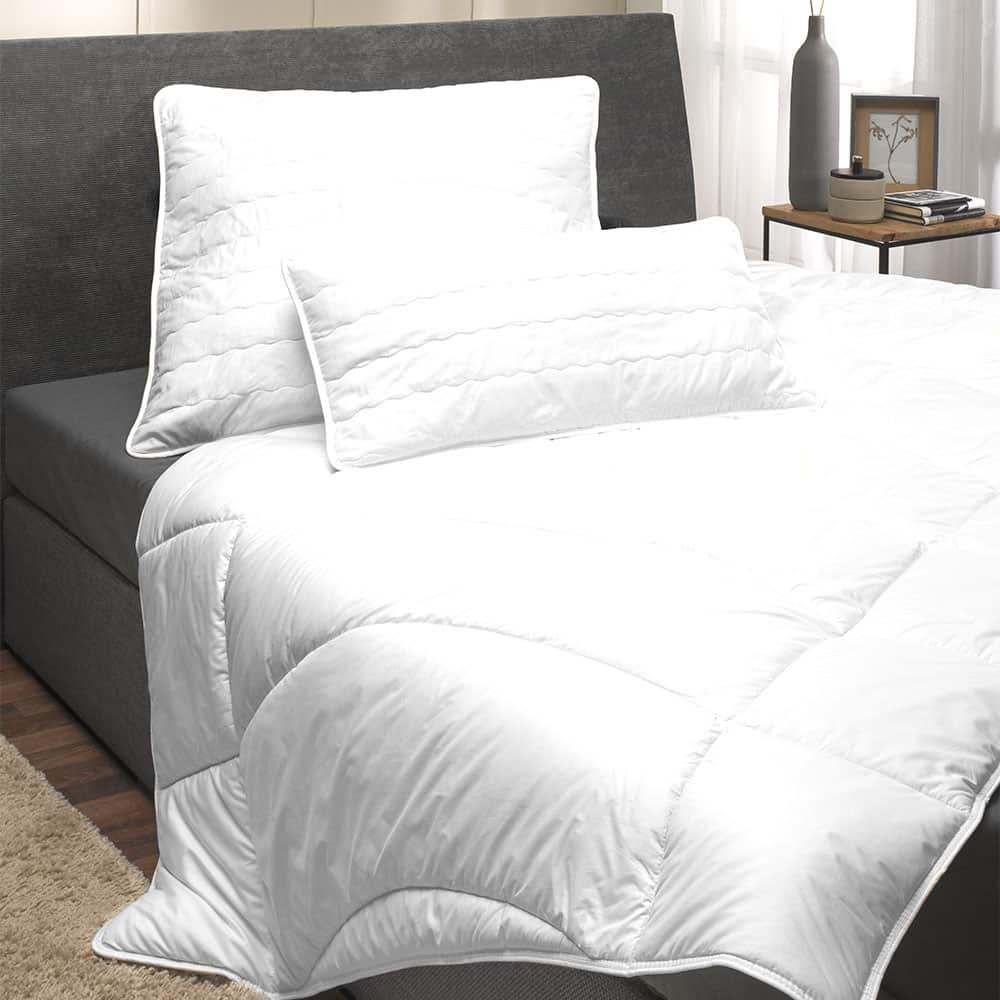 Das Kopfkissen Meridas weiß bietet optimalen Schlafkomfort und unterstützt eine entspannte Liegeposition für Kopf und Nacken. Mit seiner praktischen Größe von ca. 40 × 80 cm passt es perfekt in gängige Kissenbezüge und eignet sich sowohl für Rücken-, Seiten- als auch Bauchschläfer. Die hochwertige Füllung aus Markenhohlfaser Comfortfill sorgt für eine angenehme Stützkraft und bleibt dauerhaft formstabil. Dank der abgestimmten Füllmenge von 100/325 g bietet das Kopfkissen Meridas weiß eine ausgewogene Balance zwischen Weichheit und Stabilität – für ein komfortables Liegegefühl die ganze Nacht. Das Inlett aus 100 % Baumwolle ist besonders hautfreundlich, atmungsaktiv und sorgt für ein angenehmes Schlafklima. Gleichzeitig ist das Kopfkissen Meridas weiß allergikergeeignet und somit ideal für empfindliche Personen. Für maximale Hygiene lässt sich das Kopfkissen Meridas weiß problemlos bei 60 °C waschen und ist zudem trocknergeeignet. So bleibt es dauerhaft frisch, sauber und hygienisch – perfekt für den täglichen Gebrauch. Die schlichte weiße Optik passt sich jeder Bettwäsche harmonisch an und verleiht dem Schlafzimmer ein gepflegtes Erscheinungsbild. Das dieses Produkt überzeugt durch hochwertige Materialien, einfache Pflege und angenehmen Liegekomfort – für einen erholsamen und gesunden Schlaf.