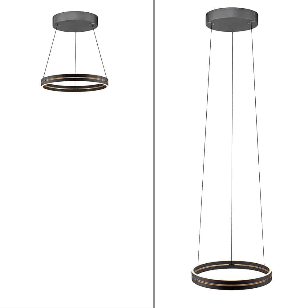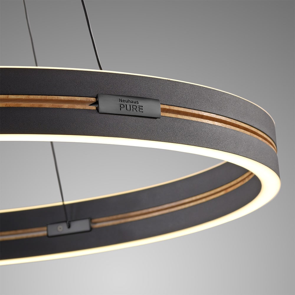 Die LED Pendelleuchte Pure E Loop verbindet minimalistisches Design mit innovativer Funktionalität. Der dünne, kreisrunde Leuchtenring wird elektrisch höhenverstellbar (e‑LIFT®, ca. 40–350 cm), sodass er je nach Bedarf als klassische Pendelleuchte oder dezente Deckenleuchte fungiert. Die Leistung liegt je nach Modell bei 40–44 W, mit rund 4.100 bis 4.480 lm, für energieeffiziente Grundbeleuchtung. Farbtemperatur und Helligkeit sind stufenlos verstellbar (CCT 2.700–5.000 K, dimmbar) – per magnetischer Funk‑Fernbedienung steuerbar, inklusive Memoryfunktion für persönliche Favoriten. Modelle sind in Varianten wie Aluminium, mattes Messing oder mystic grey mit Ø 50 cm oder Ø 70,1 cm erhältlich. Die Steuerung erfolgt intuitiv via Drehring auf der Fernbedienung, die per Wandhalter integriert werden kann. Optional erhältlich sind schwarze Fernbedienung und Wandhalterung Sicherheitsfunktionen wie automatischer Motor-Stopp bei Hindernissen und programmierbare Maximalhöhe sorgen für komfortable Bedienung im Alltag. Mit präziser Technologie und formschöner Gestaltung ist die LED Pendelleuchte Pure E Loop ideal für moderne Wohn- oder Hauseinrichtung.