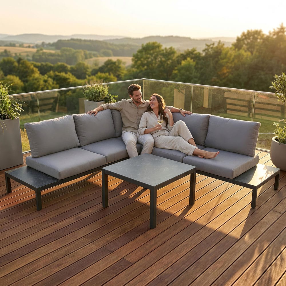 Das Lounge Eck-Set Paddy verbindet Funktionalität, Komfort und modernes Outdoor-Design und wird zum stilvollen Mittelpunkt jeder Outdoor-Lounge.