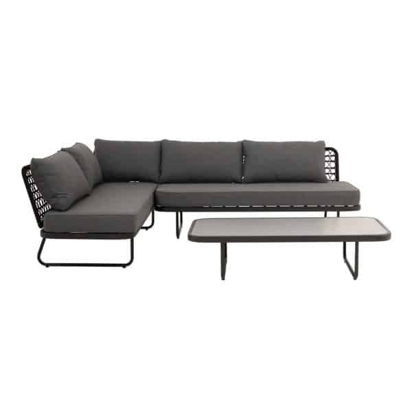 Das Gestell aus feuerverzinktem Stahl, matt schwarz pulverbeschichtet, sorgt für Stabilität und eine moderne, zeitgemäße Ausstrahlung. Mit einem Gesamtmaß von ca. B/H/T 236 x 65 x 173 cm bietet das Lounge-Set ausreichend Platz zum Entspannen und geselligen Beisammensein im Freien.