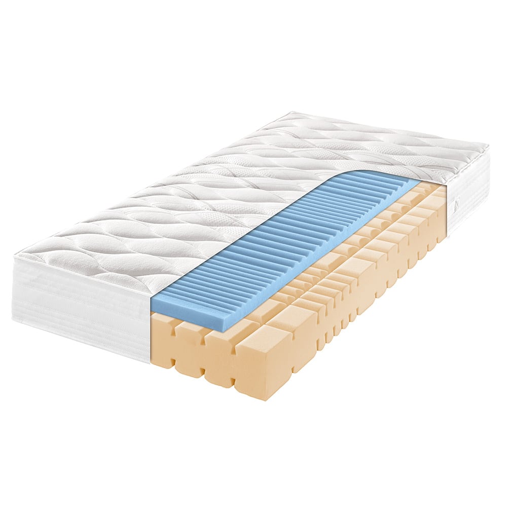 Komfortable Matratze 100 cm mit 7-Zonen-Kaltschaumkern, H2 und Klimaband für optimale Belüftung.