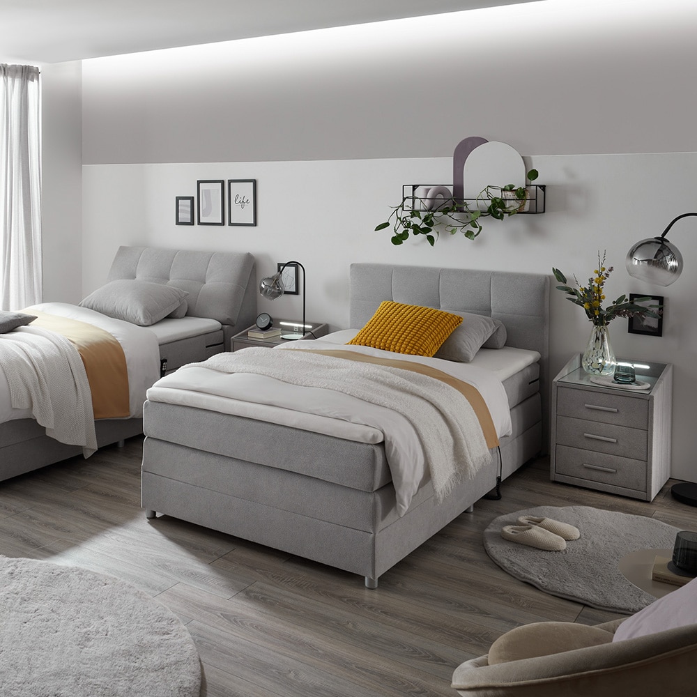 Das Motor Boxspringbett Tarascon von Möbelhof ist eine komfortable Kombination aus hochwertigem Schlafsystem und moderner Technik. Das Motor Boxspringbett Tarascon bietet Ihnen eine motorische Verstellfunktion, mit der Sie Kopf- und Fußteil elektrisch anpassen können – für höchsten Komfort beim Lesen, Entspannen oder Einschlafen. Die elegante Polsterung verleiht dem dieses Produkt eine edle Erscheinung, während die solide Konstruktion der Boxspring-Basis für Stabilität und Langlebigkeit sorgt. Der Bezug und der Komfort des dieses Produkt machen es zur idealen Wahl für alle, die stilvolles Design mit hochwertigem Liegegefühl verknüpfen möchten.