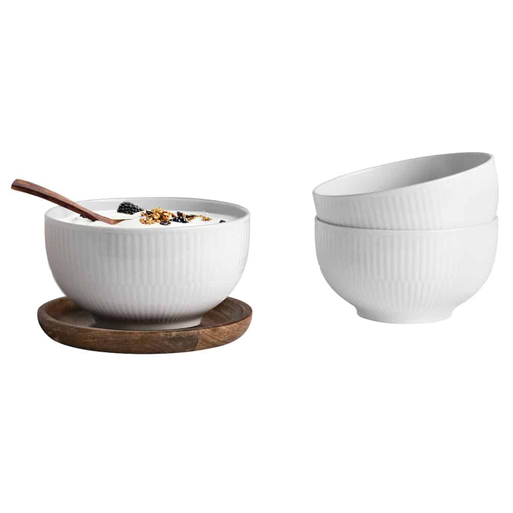 Müslischalen Set weiß, 3-teilig aus hochwertigem Porzellan, zeitlos und vielseitig – ideal für Müsli, Snacks oder Desserts.