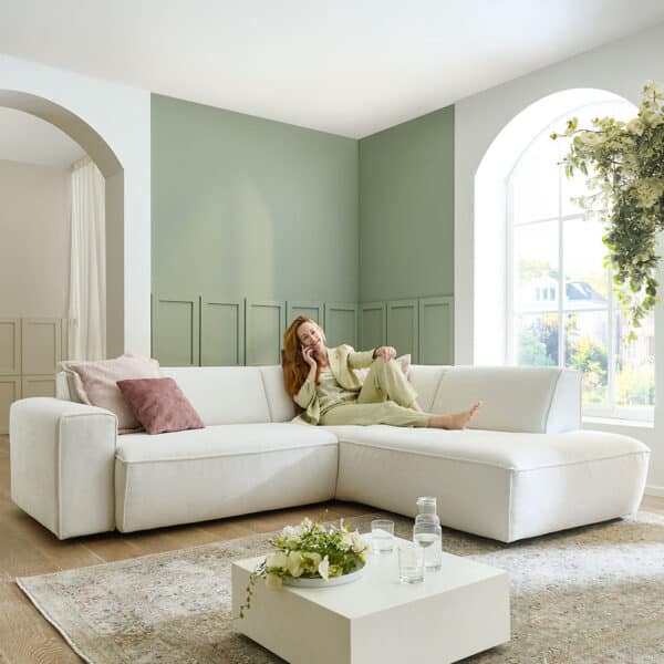 Die Polstergarnitur Pandora ist eine stilvolle Wohnlösung für alle, die Komfort und Großzügigkeit in ihrem Zuhause schätzen. Die Garnitur besteht aus einem 2-Sitzer XL mit Armlehne links in den Maßen ca. 147 x 75 x 107 cm sowie einem 1,5-Sitzer Kombielement mit Anstellhocker rechts in den Maßen ca. 107 x 75 x 227 cm. Dadurch entsteht eine harmonische Kombination, die sich ideal für gemütliche Stunden im Wohnbereich eignet.