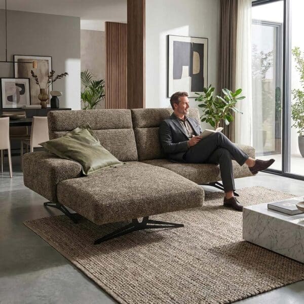 Besonders praktisch ist die integrierte manuelle Relaxfunktion, bei der sich sowohl die Rückenlehne als auch die Sitztiefe individuell verstellen lassen. So können Sie Ihre persönliche Wohlfühlposition jederzeit anpassen. Mit einer Belastbarkeit von ca. 120 kg pro Sitzplatz ist die Polstergarnitur Clayton zudem robust und alltagstauglich. Da der Rücken echt bezogen ist, kann das Möbelstück frei im Raum platziert werden und wirkt von allen Seiten ansprechend.