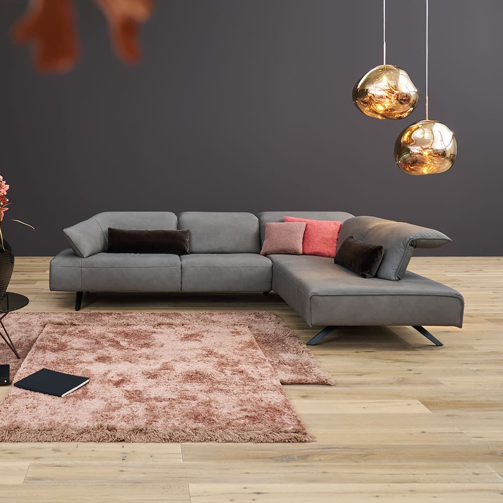 Polstergarnitur Signa grau mit hochwertigem Bezug aus Leder 22 Soft-Nappa. Maße ca. 276 / 78 / 165 cm. Elegantes Design trifft auf erstklassigen Sitzkomfort.