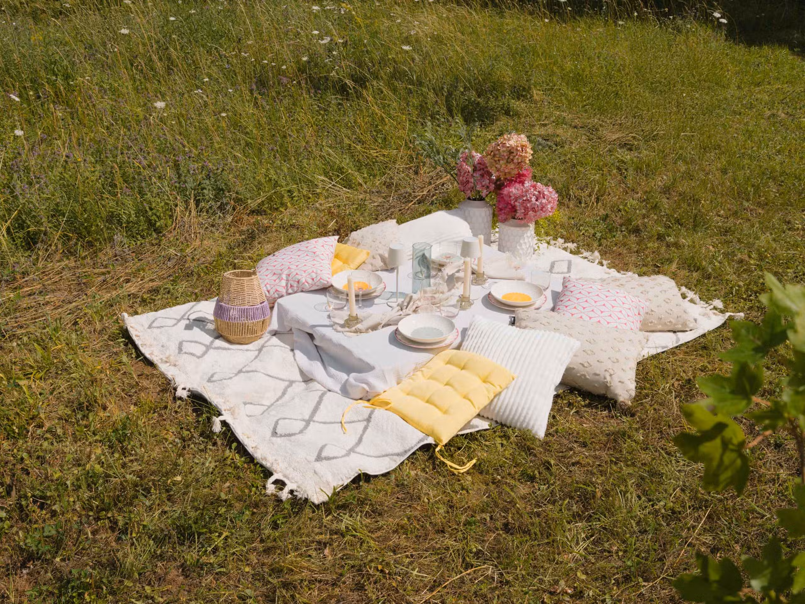 Schnappen Sie sich flauschige Kissen, Geschirr und Ihre Freunde und verbringen Sie entspannte Stunden in der Natur.