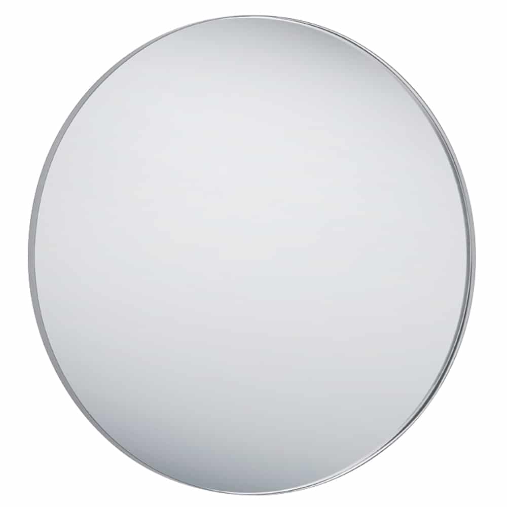 Der Rahmenspiegel Britta aus silberfarbenem Metall, ca. 80 cm Durchmesser, ist ein eleganter und moderner Begleiter für jeden Raum.