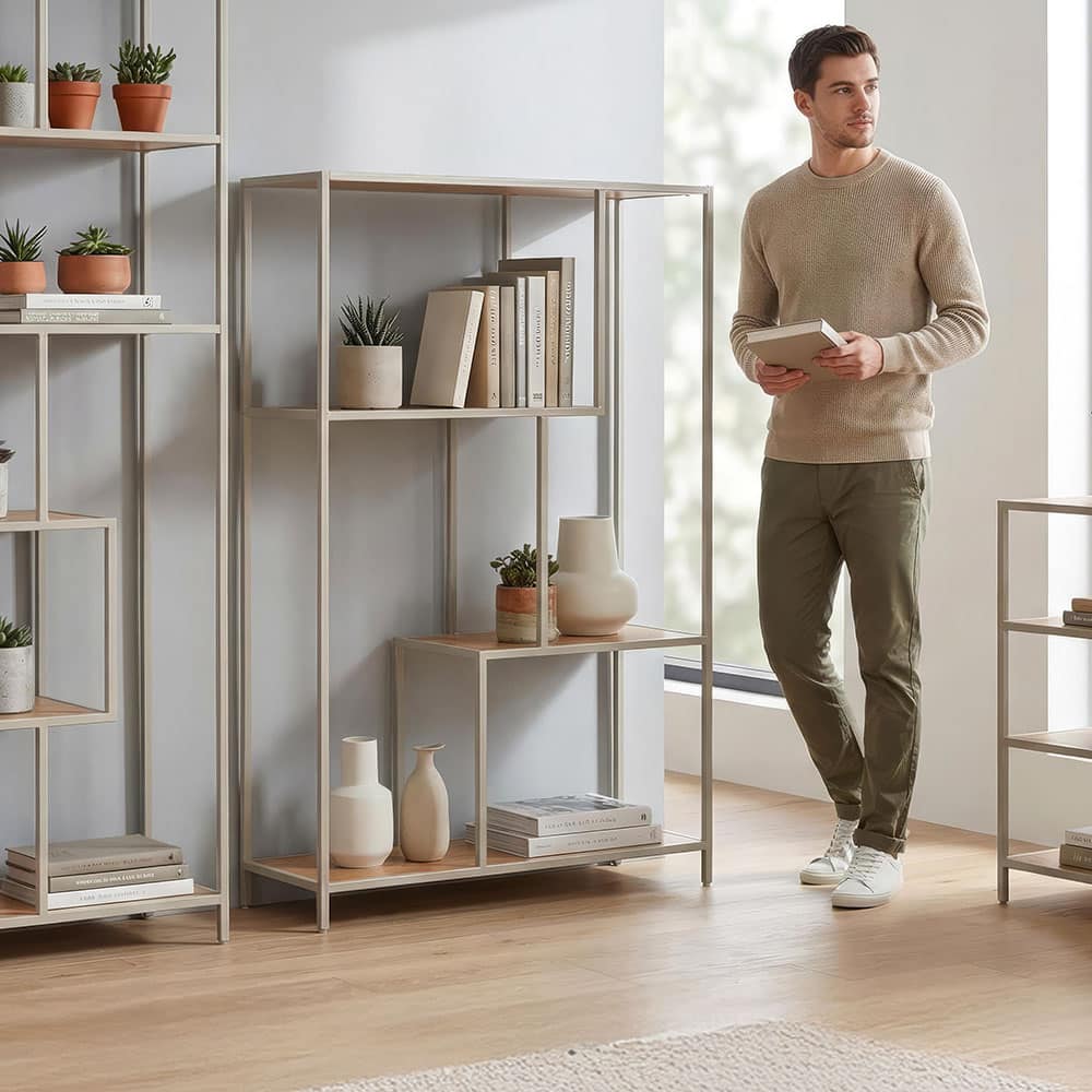 Das Regal Sorena Exclusiv ist eine moderne und funktionale Lösung für stilvollen Stauraum in Ihrem Wohn- oder Arbeitsbereich. Mit seinen Maßen von ca. 77 x 114 x 35 cm (B/H/T) eignet es sich ideal für kleinere Flächen und bietet dennoch ausreichend Platz für Bücher, Dekoration oder Alltagsgegenstände.
