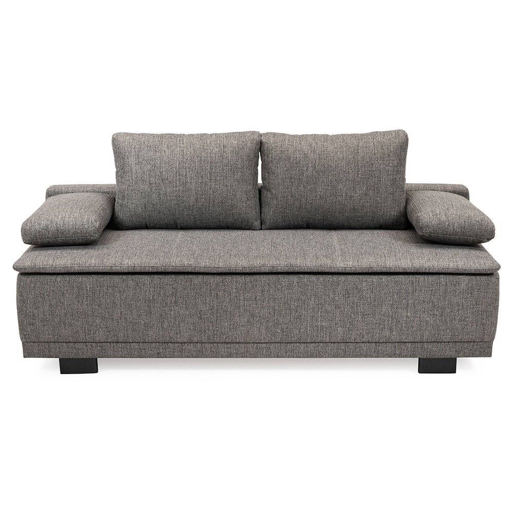 Das Schlafsofa (ca. 195x76x83 cm) mit Bezug Rebel Shitake 9713 bietet Stauraum, ohne Armlehnen, mit schwarzen Füßen (N5, 1,5 cm). Es ist mit Bonded Schaum und VP25 Pur-Schaum gepolstert – bequem und stilvoll.