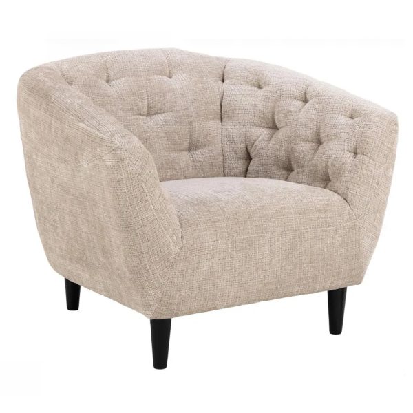 Der Sessel Alfea vereint zeitlose Eleganz mit modernem Sitzkomfort. Der hochwertige Stoffbezug in Beige verleiht ihm eine warme, wohnliche Ausstrahlung und lässt sich vielseitig kombinieren – von modern bis klassisch.