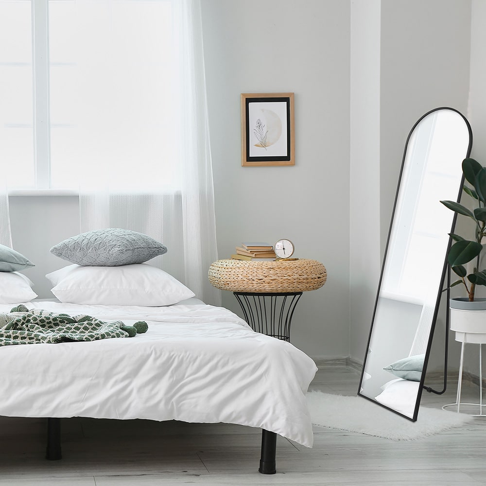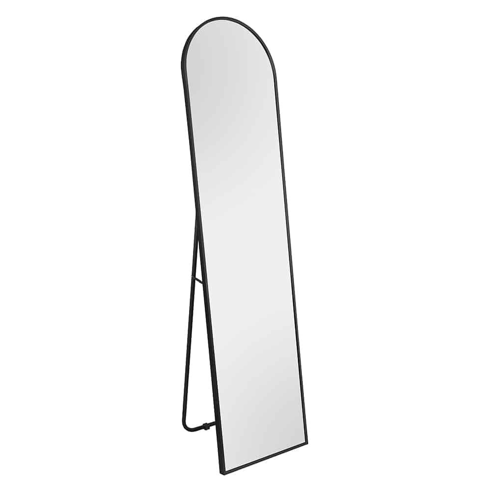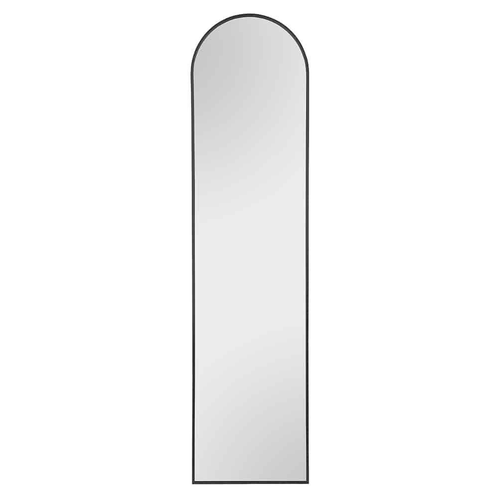 Der Standspiegel Britt (ca. 40x160 cm) in Schwarz aus Metall ist ein eleganter, stabiler Spiegel, der deinem Raum eine moderne Note verleiht und flexibel platzierbar ist.