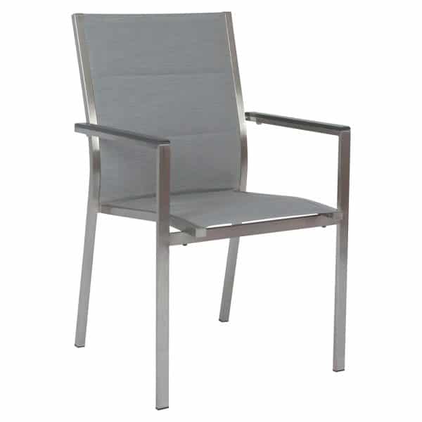 Der Stapelsessel Cardiff überzeugt mit moderner Optik und hochwertigen Materialien für den Outdoor-Bereich. Das Gestell aus Edelstahl sorgt für Stabilität, Langlebigkeit und eine elegante Ausstrahlung.
