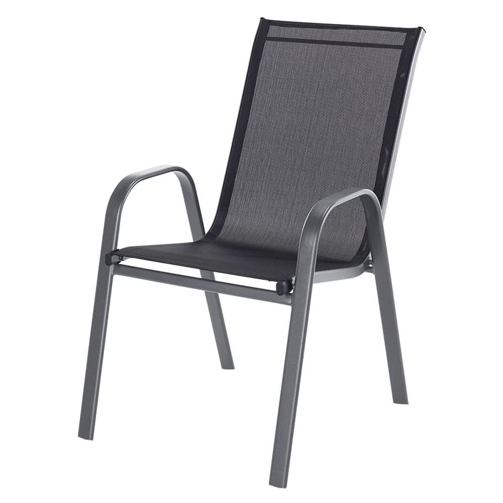 Stapelstuhl anthrazit mit Textilene-Bezug und pulverbeschichtetem Stahlgestell. Ideal für Balkon, Terrasse und Garten.