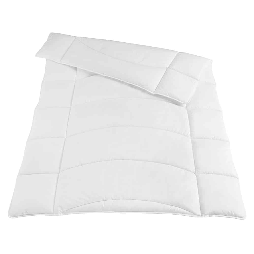 Die Steppdecke Parlas leicht, mit den Maßen 155×220 cm, überzeugt mit atmungsaktiver Bambus-Viskosefaser und 100% Baumwolle. Waschbar bei 60 °C, ideal für Allergiker.