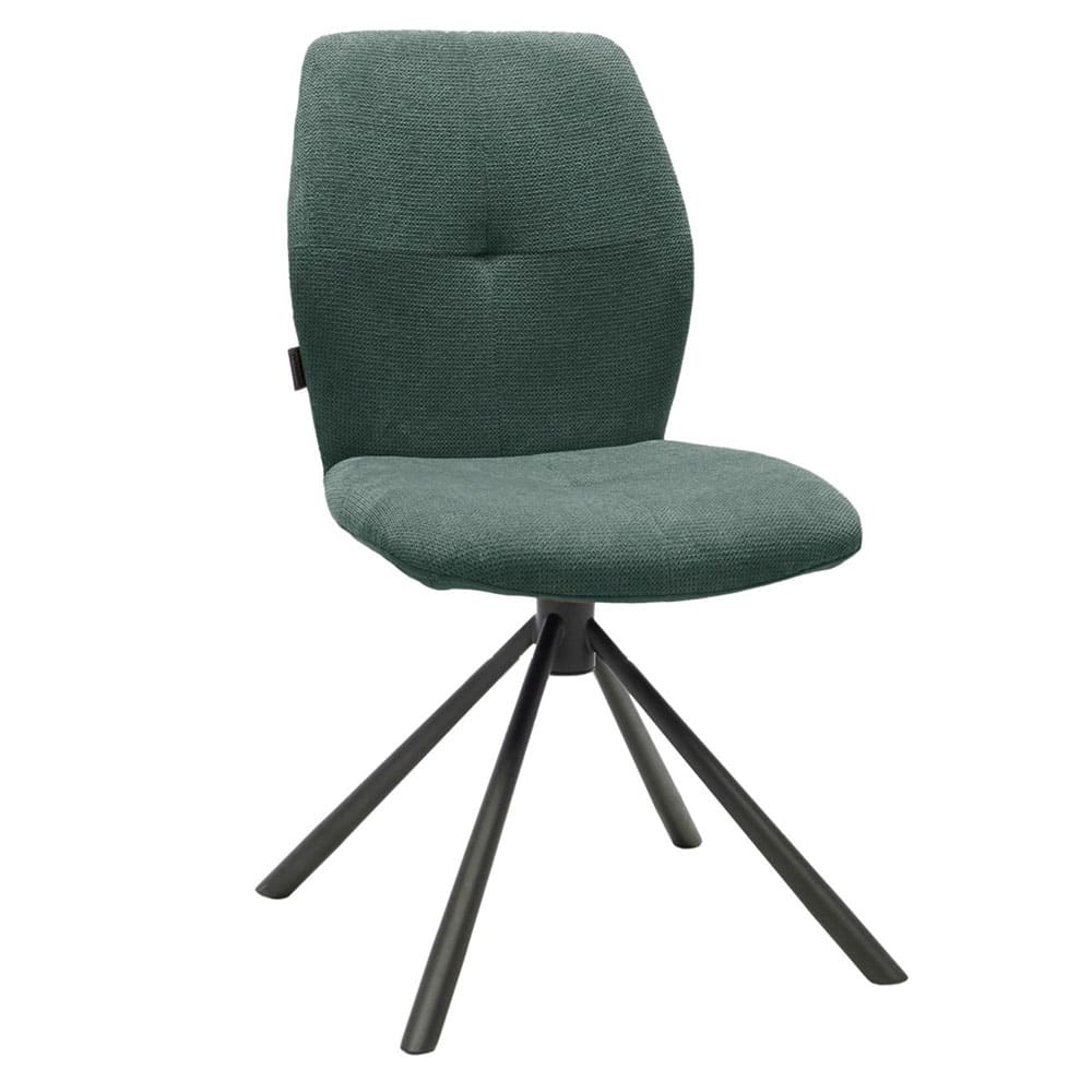 Der Stuhl Mele überzeugt mit modernem Design in elegantem Petrol und praktischer Drehfunktion. Die Kombination aus zwei Stoffen und schwarzem Metallgestell macht ihn zu einem stilvollen Highlight.