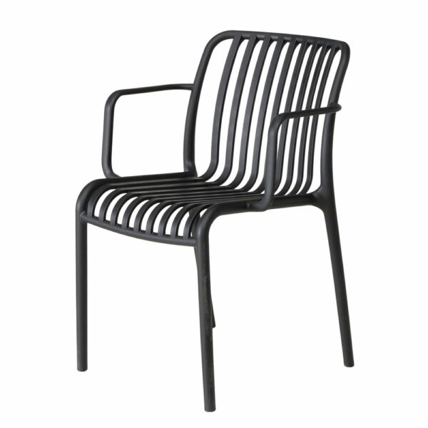 Der Stuhl Quito überzeugt mit seinem modernen, minimalistischen Design in elegantem Schwarz matt und sorgt für stilvolle Akzente in jedem Raum. Die robuste Kunststoffkonstruktion bietet zugleich Komfort und Langlebigkeit.