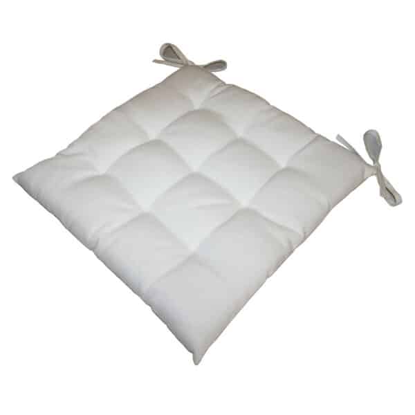 Das Stuhlkissen in beige sorgt für mehr Sitzkomfort und setzt gleichzeitig einen frischen Farbakzent. Mit praktischen Bindebändern bleibt es sicher an Ort und Stelle.