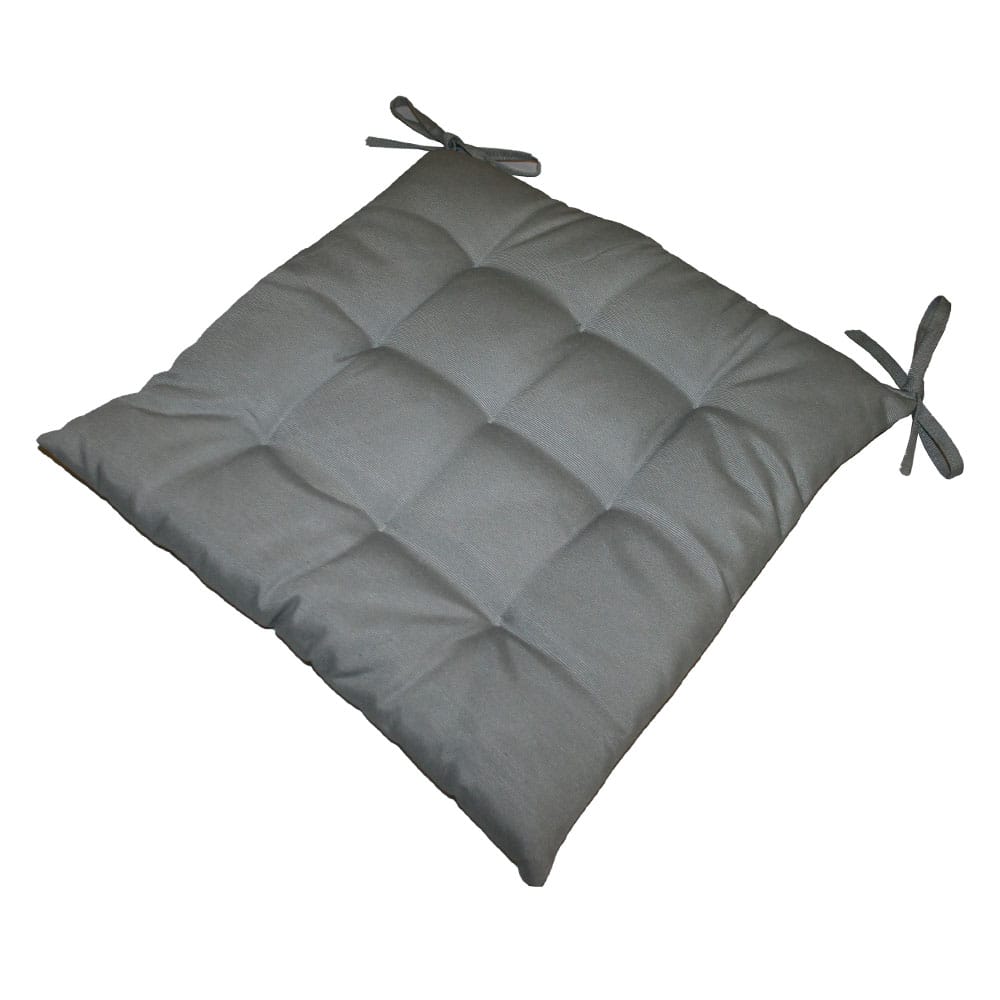 Das Stuhlkissen in silber sorgt für mehr Sitzkomfort und setzt gleichzeitig einen frischen Farbakzent. Mit praktischen Bindebändern bleibt es sicher an Ort und Stelle.