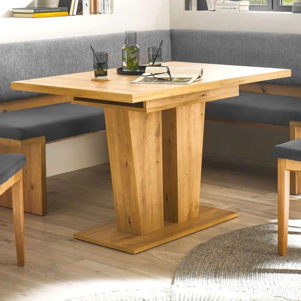 Mit seinen Maßen von ca. 120 x 80 cm bietet der Tisch eine kompakte Größe für den Alltag und eignet sich ideal für kleinere Räume oder gemütliche Essbereiche. Bei Bedarf lässt sich der Tisch dank des praktischen Synchronauszugs mühelos auf ca. 160 cm verlängern, sodass zusätzlicher Platz für Gäste entsteht.
