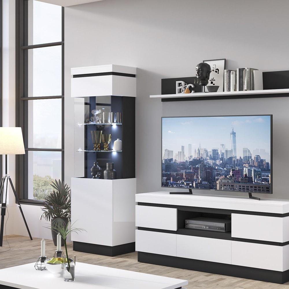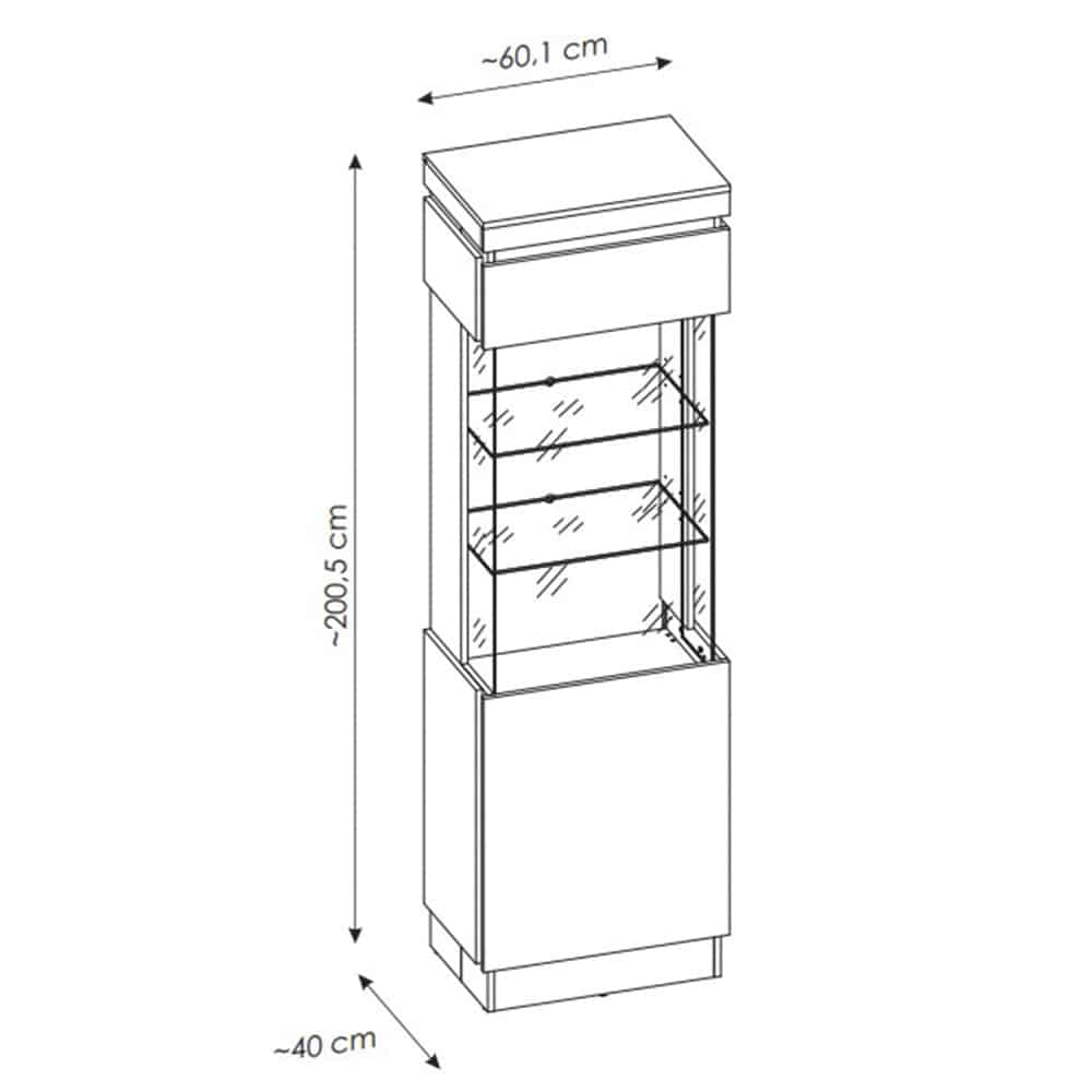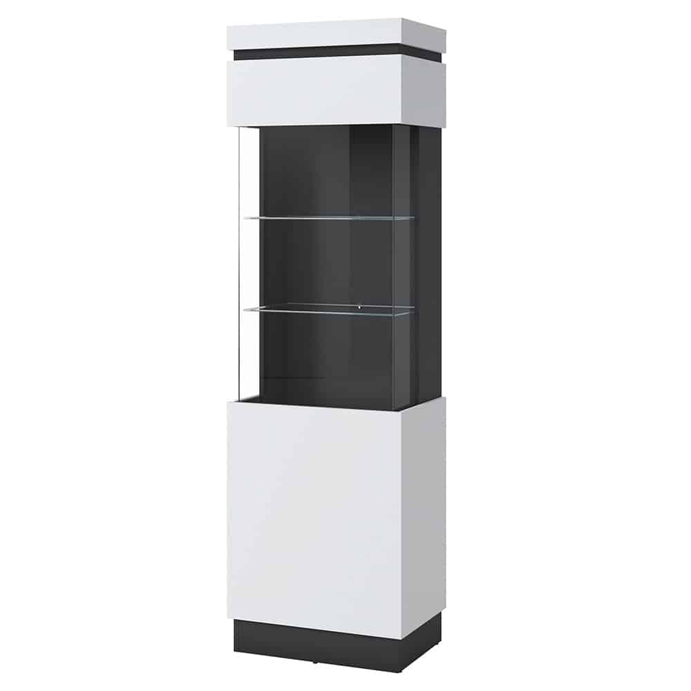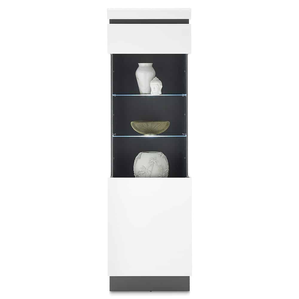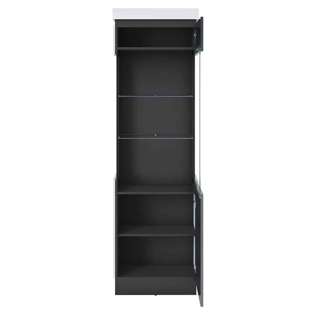 Vitrine Camira (ca. 61x201x40 cm) Korpus und Front alpinweiß, Absetzungen anthrazit, grifflos, Füße/Gleiter Kunststoff