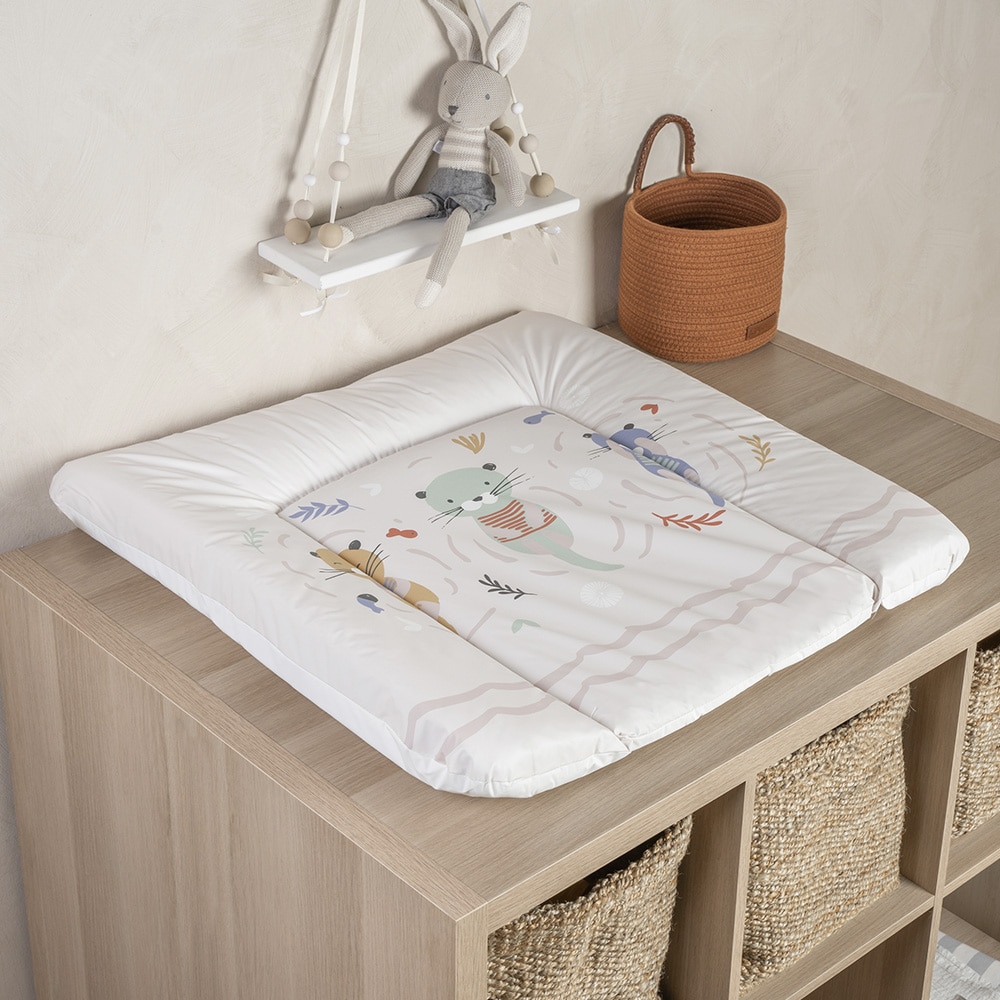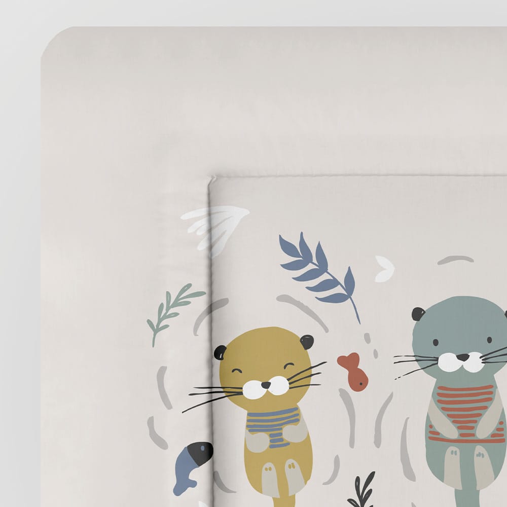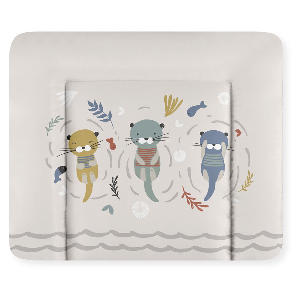 Wickelauflage Softy grau mit niedlichem Otter-Design – hygienisch, abwischbar und komfortabel.