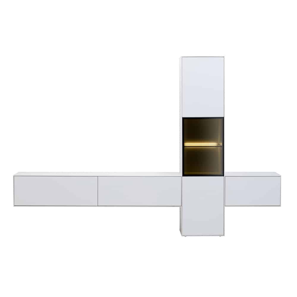 Mit klarer Formensprache und einer makellosen Oberfläche in Polarweiß bringt das Wohnprogramm Medio Polarweiß moderne Leichtigkeit in Ihr Zuhause. Das Wohnprogramm Medio Polarweiß kombiniert schwebende Optik mit integrierten Stauraumlösungen, sodass Ihr Wohnzimmer aufgeräumt und stilvoll wirkt.