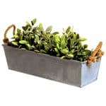 Zinkblumenkasten silber mit rustikalen Seilgriffen, ideal für Kräuter, Blumen oder Deko. Maße: ca. 44 x 15 x 13 cm.